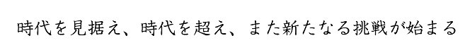 今後とも、「時代を見据え、時代を超え、また新たなる挑戦が始まる」という社訓のもと、